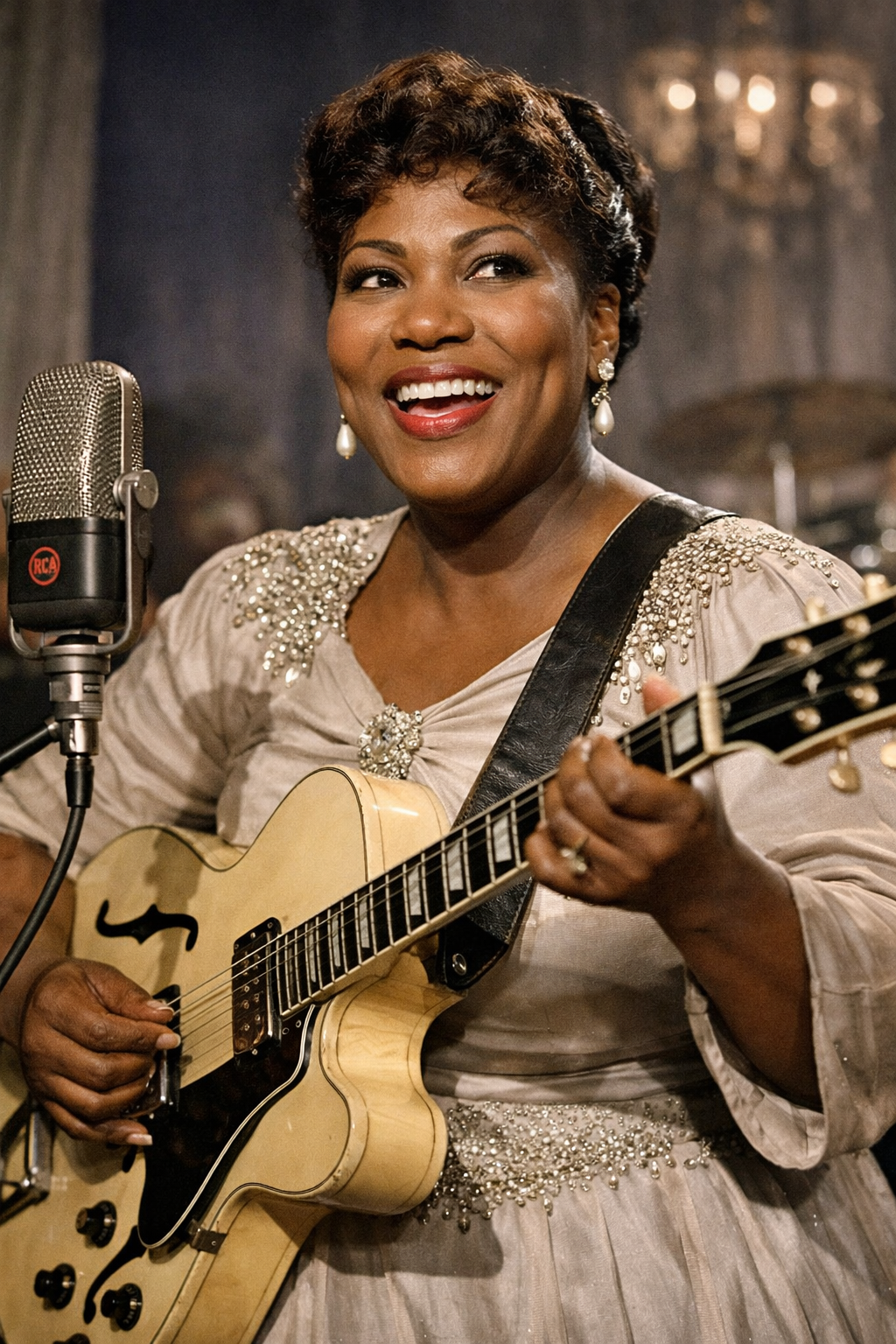 Instead of choosing sides, Rosetta Tharpe refused the categories altogether. She played gospel songs in clubs and secular songs with gospel intensity. She sang about faith without softening the music, and she played electric guitar without apologizing for its power.